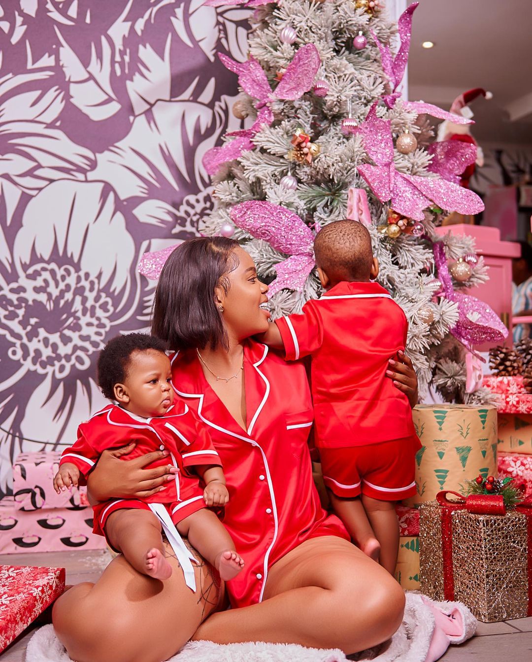 Londie London in the Christmas mood as she has share photos of herself with her beautiful kids.