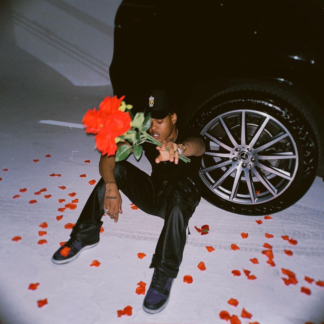 He shared photos of himself sitting beside the car and holding flowers.